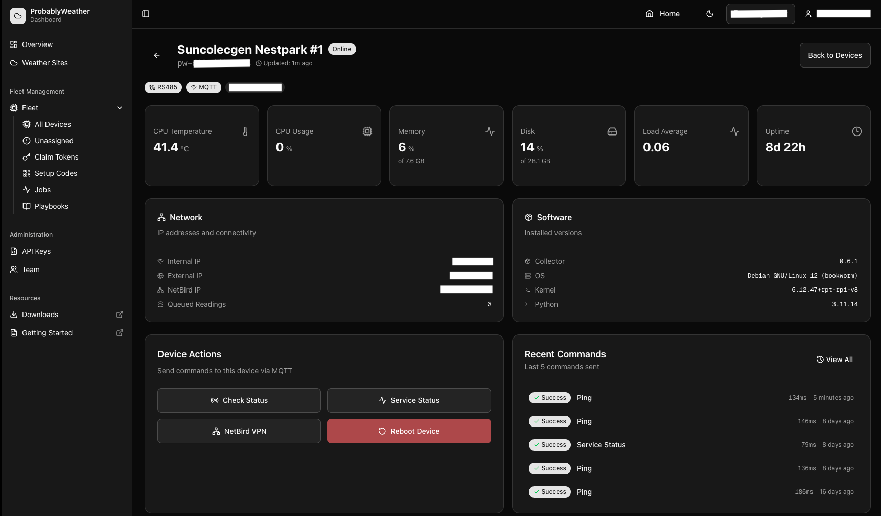 Solar companies need continuous weather monitoring across remote sites. Off-the-shelf solutions lack industrial sensor support, fleet management, and tie operators to vendor-locked platforms.