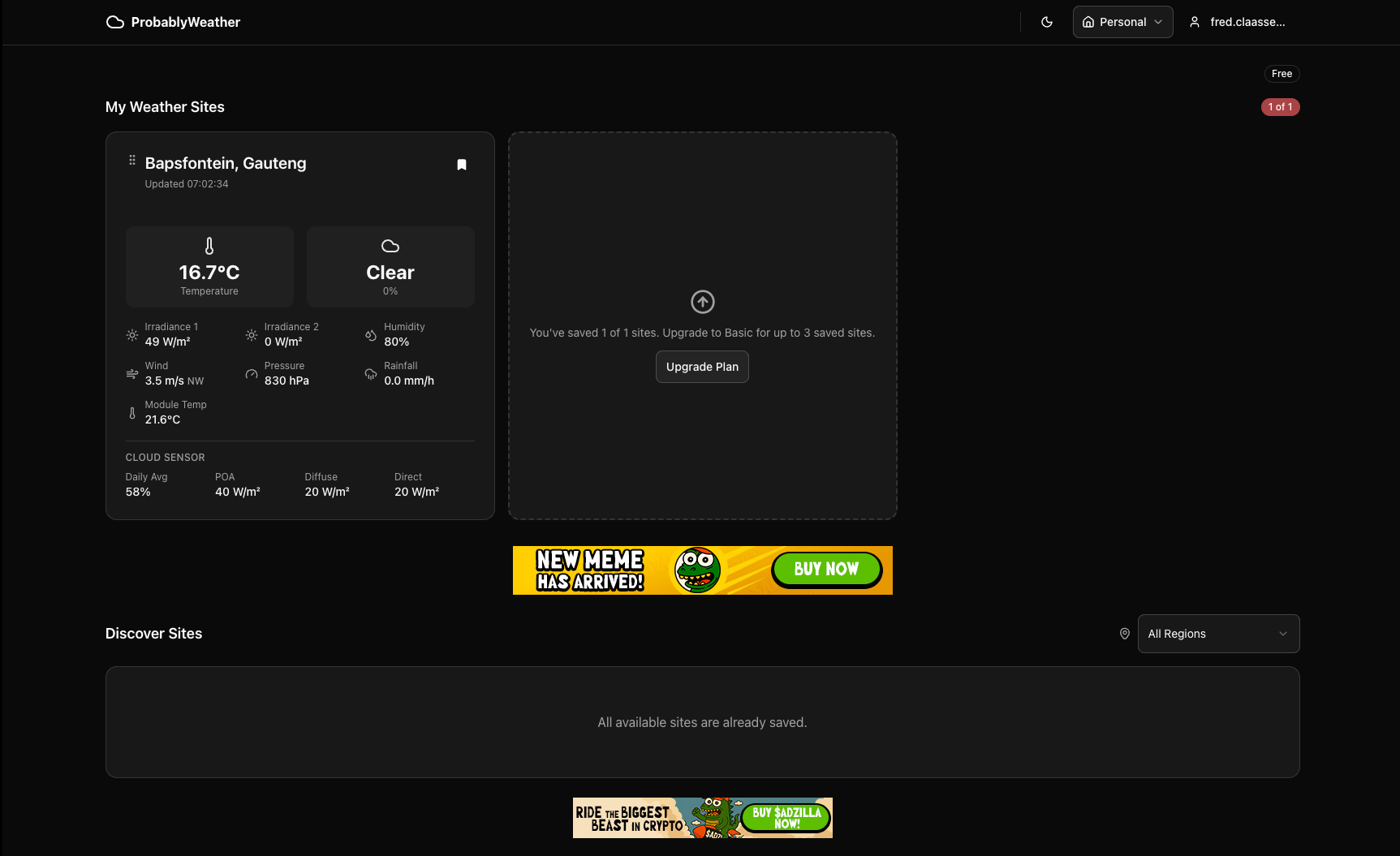 Consumer site detail with weather conditions and tiered feature access